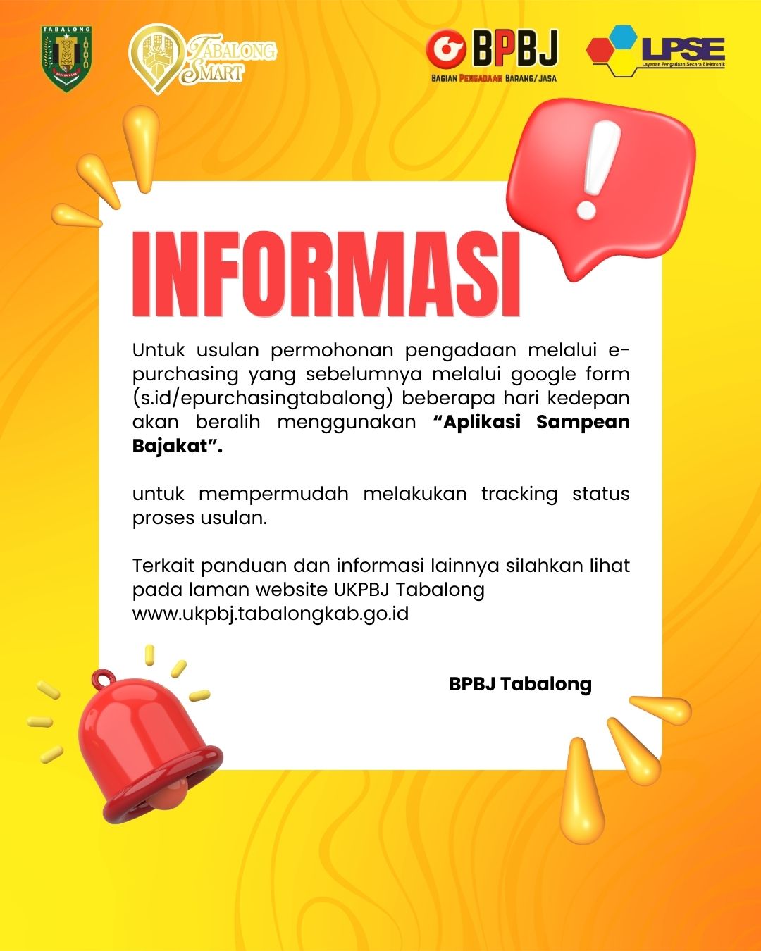 Informasi Perubahan Link Pengajuan Belanja E-Purchasing 23 Jan 2026 2 bulan yang lalu 27x dibaca Informasi Perubahan Link Pengajuan Belanja E-Purchasing